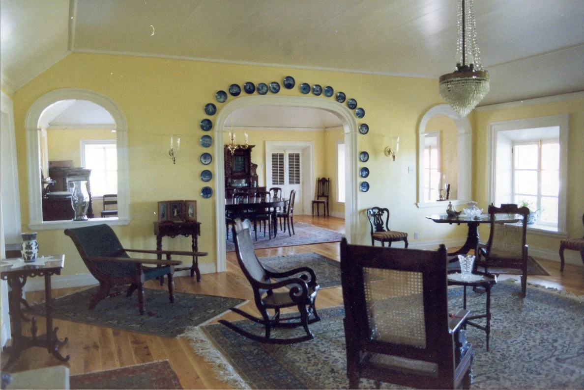 Great Room w/ the new pitch pine floors, ceiling and site-milled trim. This room features Mr. Cissel’s antique Danish furniture collection.